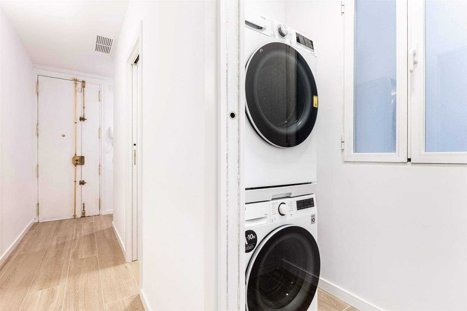 Se realizó un cerramiento del altillo con ventana de cristal fijo y puerta para permitir la entrada de iluminación.